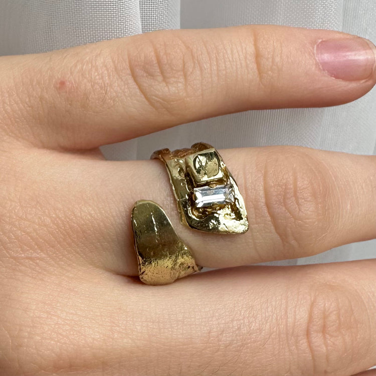 A nice delicate chain linked and crystal ring that not only makes an elegant statement, but can be adjusted to fit any finger too! The perfect add on to your wardrobe for any season.