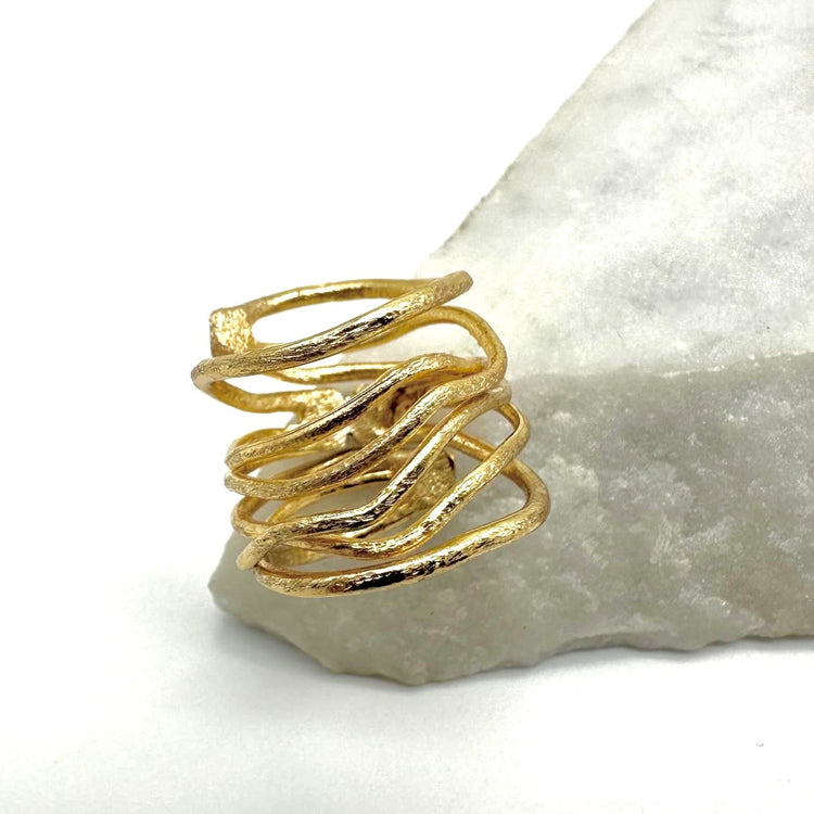 A bold yet sleek statement ring which is simple in design yet a real show stopper. Can be paired with any of your other favourite gold jewellery day or night.