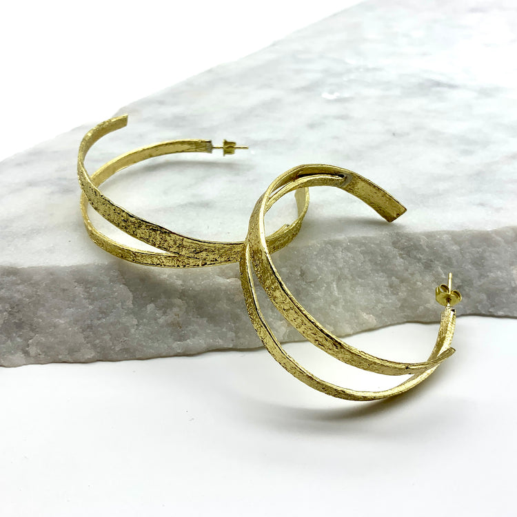 Don't we all want a touch of sunshine throughout our day? These delicate yet statement unique double banded hoops are the perfect touch to any outfit, any day!