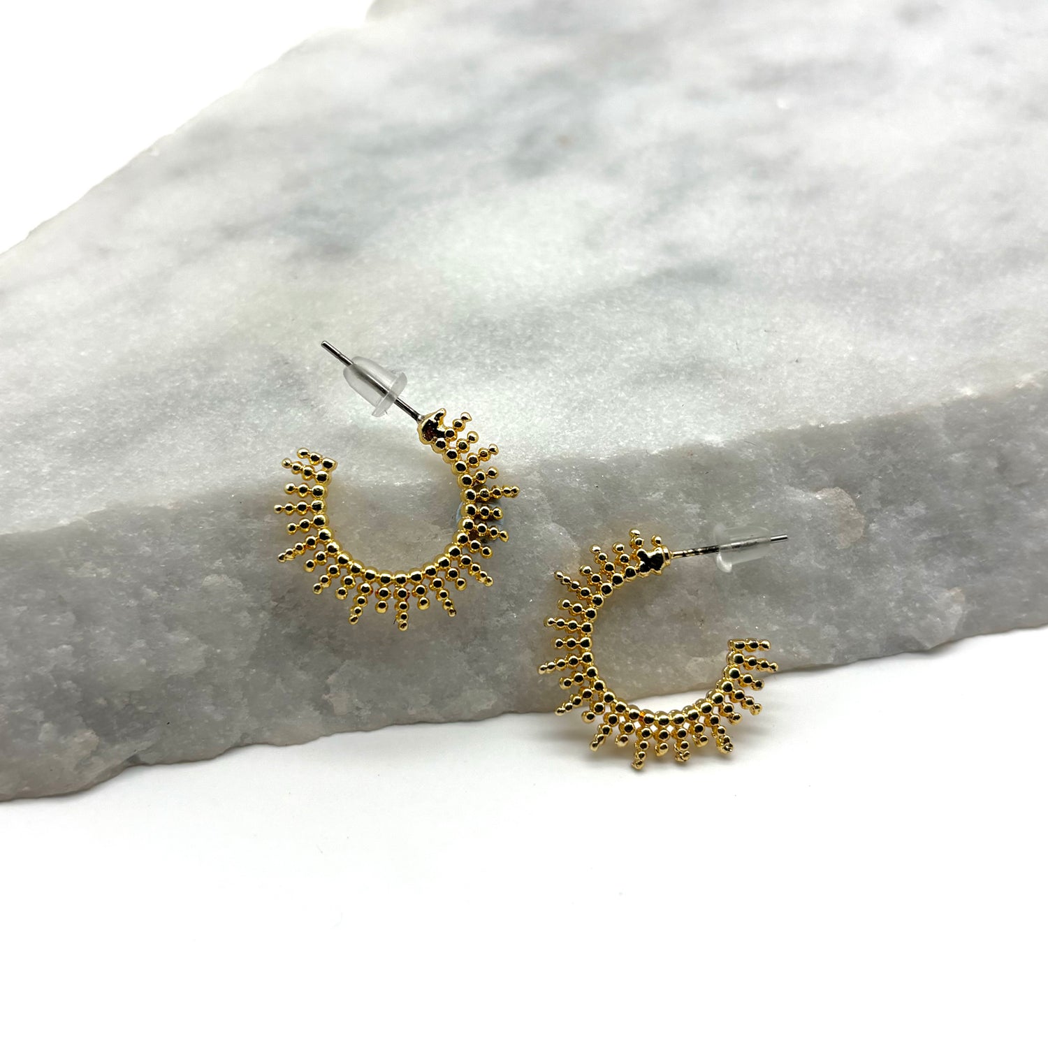 Don't we all want a touch of sunshine throughout our day? These delicate yet statement unique hoops are the perfect touch to any outfit, as well as making an elegant way to add some vibe to your ear stacking this season.