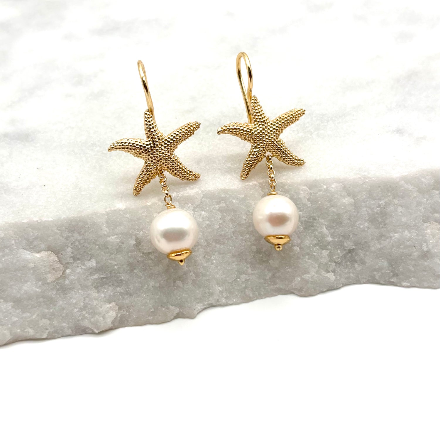 Pearls are the gems of the sea which offers protection to the wearer, as well as helps one attract good luck and abundance, whilst the Starfish symbolises infinite, divine love; and love is what you'll feel for this beautiful pair of handmade earrings!