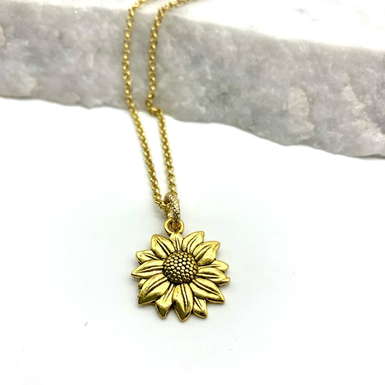 This Sunflower Necklace from Sue's Jewels is a radiant emblem of positivity and resilience. The intricately designed pendant mirrors the sunflower's vibrant spirit, symbolising joy, growth, and unwavering optimism. This necklace inspires warmth and happiness wherever you go.